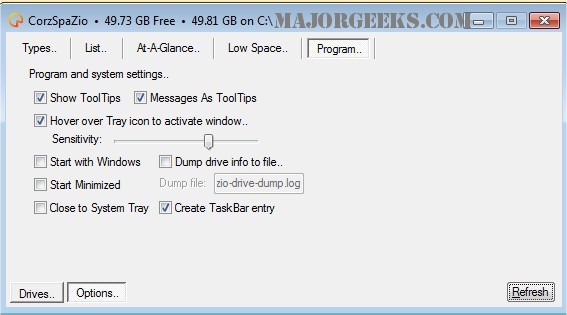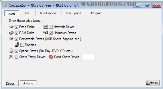 CorzSpaZio is a handy tool for displaying important information about all Windows fixed disks, removable, optical and network disks, as well as RAM Disks, and even unknown disks.