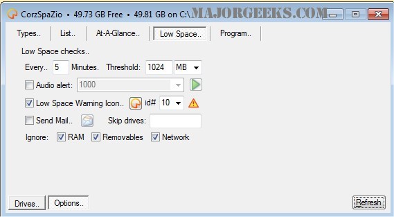 Automatic low-space checking, with optional alerts.