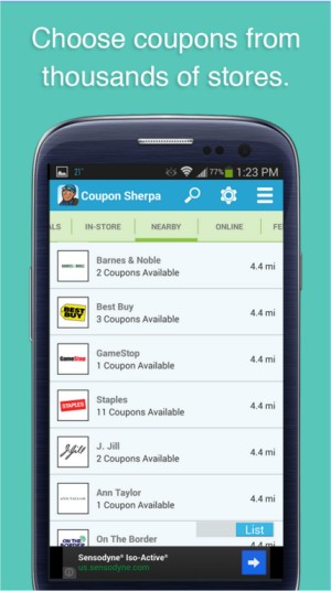 Coupon Sherpa for Android puts an end to clipping coupons. You get access to hundreds of coupons for hundreds of the most popular stores and restaurants.