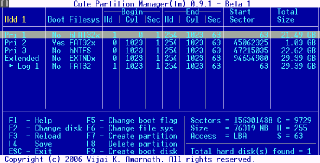Cute Partition Manager is very easy to use. It lets you preview the changes before you save them. It lets you edit the boot flag, partition type and other advanced parameters. It gives you total control of your system during the partition process. For example, it lets you remove all existing partitions and install all the operating systems from scratch. It supports all versions of Windows (9x, ME, NT, 2K, XP, Vista), DOS, Linux.