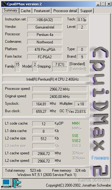 CpuiDMax2 is a freeware program that provides information on your CPU.