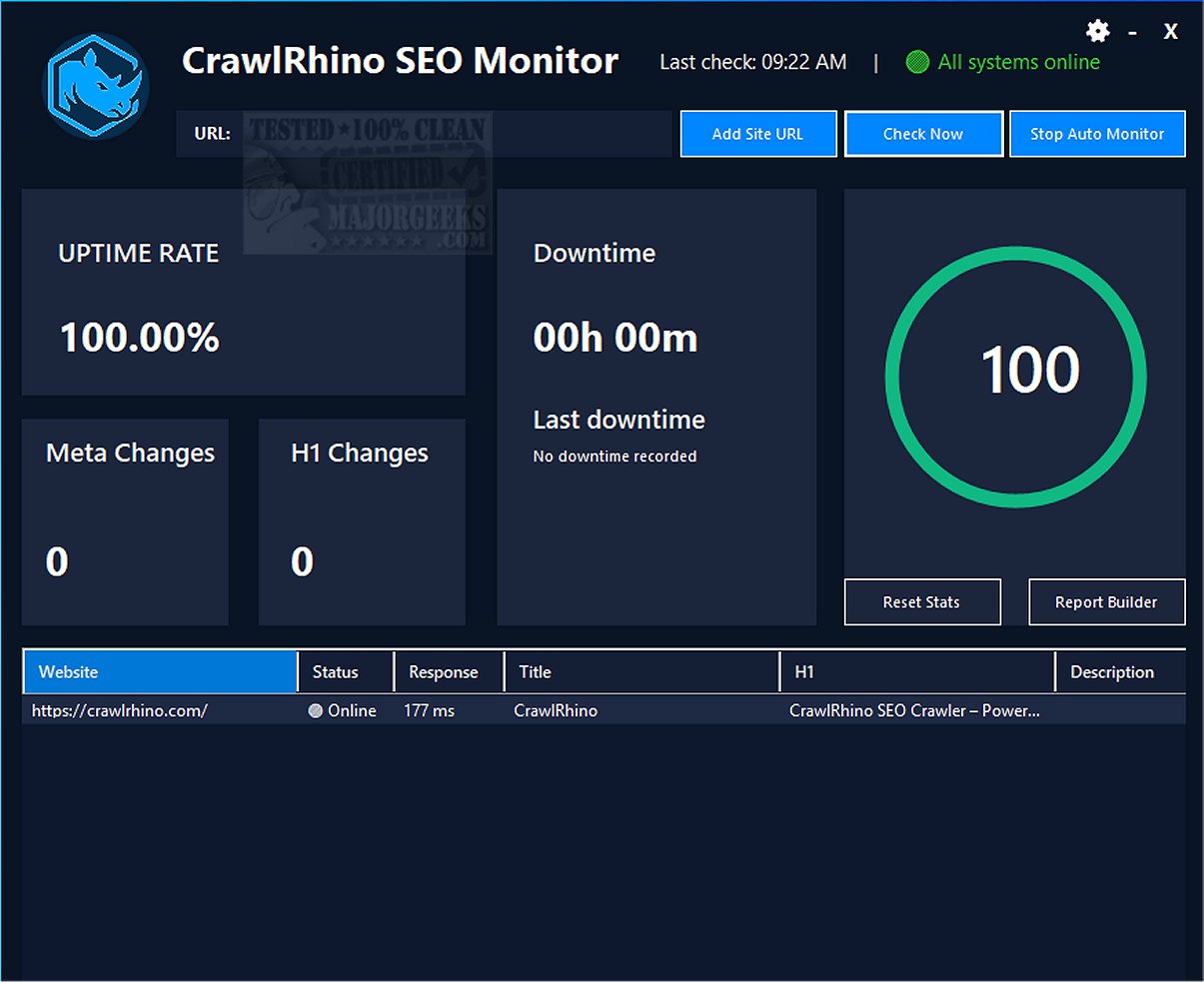 Another valuable aspect of CrawlRhino is its Report Builder. From here, you can generate detailed reports that present information in a neatly organized manner, including an overview of SEO status and a summary of operational states for each monitored domain. Report Builder requires administrator privileges.