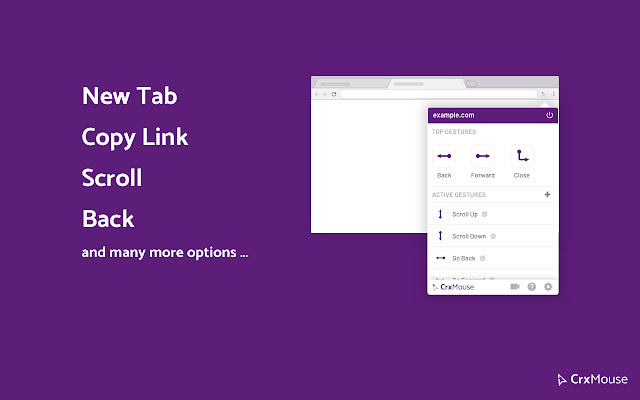 crxMouse Chrome Gestures lets you customize mouse gestures and make your browsing more productive and each mouse movement more effective. It brings the power of the browser to your fingertips, boosting your productivity.