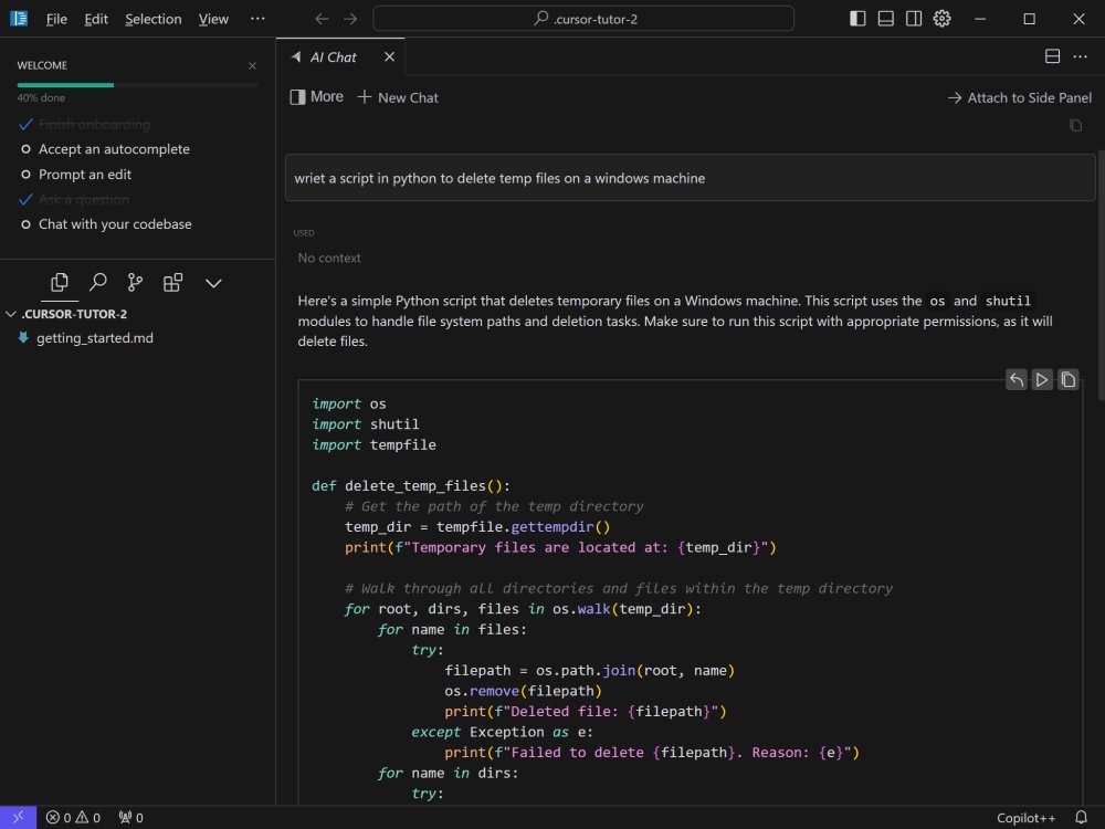 This is not a program for a complete newbie, but it is for an intermediate to professional coder. Cursor AI is basically a full coding environment with a coding tutor at your fingertips.