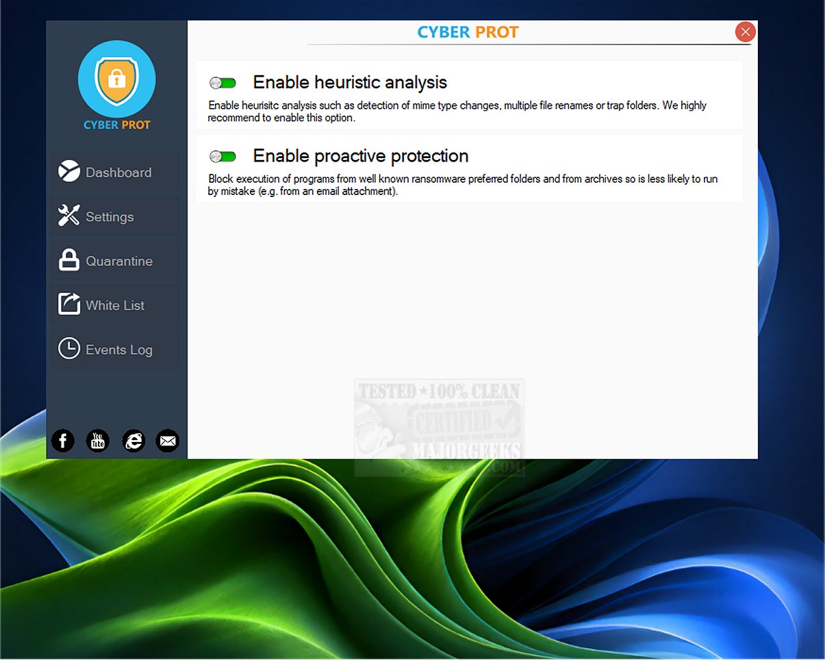 Cyber Prot is an easy-to-use software solution that offers real-time protection and can intercept malicious activity before your files are affected.