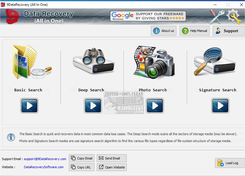 Data Recovery All in One (9DataRecovery All In One) provides a free tool for recovering data from multiple sources.