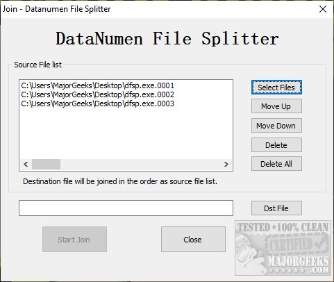 DataNumen File Splitter is a freeware app to split and join files. You can also compare files or verify the checksum.