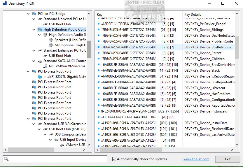 Deansbury is a comprehensive Windows Device Tree Viewer that provides you with the ability to explore and search the intricate structure of the Windows device tree. Utilizing the powerful SetupAPI and SetupDi functions, Deansbury offers an intuitive interface that allows for efficient navigation and detailed examination of installed devices and their configurations within the Windows operating system.