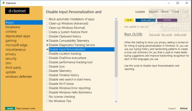 Debotnet is a free, portable app to control Windows 10 privacy settings. Video tutorial available.