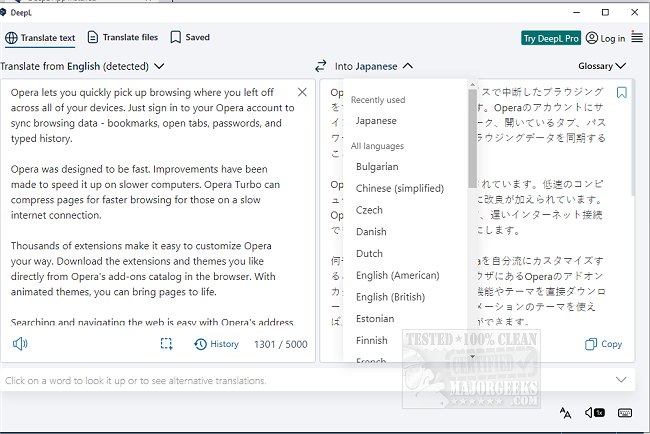 DeepL offers an effortless way to translate selected text through a simple shortcut: Ctrl+C+C. You can translate your reading in its original context, such as articles and white papers, and even translate your writing directly in the app of your choice, be it a document, email, or chat. You can even translate entire documents at once.