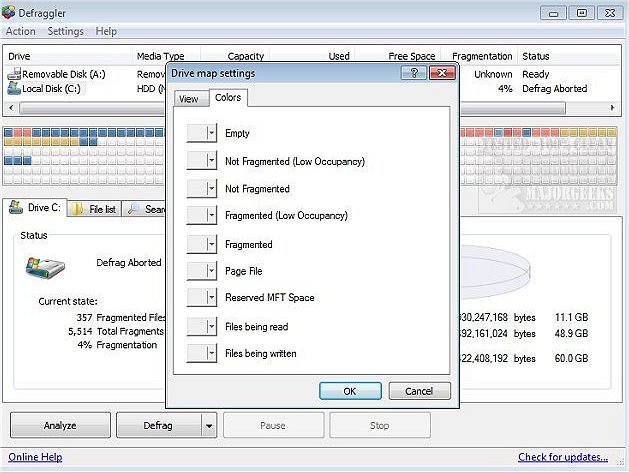 At a glance, you can see how fragmented your hard drive is. Defraggler's drive map shows you blocks that are empty, not fragmented, or need defragmentation.