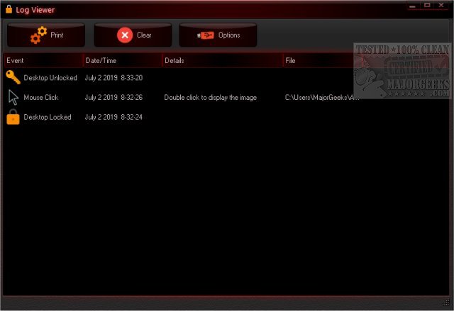 Desktop Secret Lock uses a non-standard locking method for enhanced security, coupled with its a unique password which is separate from your computer’s password. While Desktop Secret Lock is in use, your locked computer looks like it’s unlocked, but looks are deceiving. It is actually in lockdown mode which securely prevents unauthorized access to your live desktop. It can only be unlocked via your selected password. It then logs any attempts to access the desktop recording how and when the unauthorized attempts occurred.