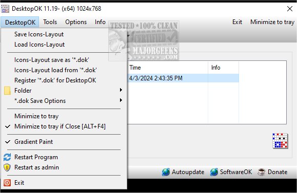 DesktopOK does not have to be installed and can be executed quickly from the desktop. It can also be carried on a small USB stick or other type of memory device.