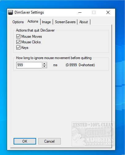 DimSaver is a tiny screensaver app capable of dimming your screen to a specified percentage at a predetermined time. Installation is exactly like that of any other.SCR file with configurations available through right-clicking the.SCR or through the control panel.