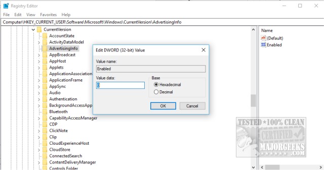 Disable Advertising ID for Relevant Ads in Windows 10 is a quick and easy registry tweak to disable advertising ID for relevant ads in Windows 10.