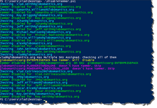 Disable Yammer in Office 365 is a PowerShell script that will disable Yammer licenses for all your users so you don't have to do it by hand. This script will loop trough all your licensed users, and disable Yammer. The Script supports different SKU for each user, so if your users will be assigned the same license, but without Yammer inside. Make sure you are connected to Office 365 before running the script as I didn't include that part! If you don't know how to connect to Office 365, check out the tutorial on the PowerShell Portal. You might also be interested in learning more about PowerShell for Office 365 to better understand the script, and be able to make your own.
