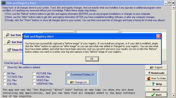 View any changes to your hard drive and registry whenever you install or uninstall software. You can always see if any hidden programs, adware, rogue programs, spyware, or program dll's are installed without your knowledge. Uninstalls tend to leave many garbage files behind, and many programs install extra files, adware, or unnecessary spyware, but this program will allow you to scan your system and keep a history list of exactly what changes have been added or removed from your pc. You can view any file types, folders, pictures, sound files, and programs that are added or removed, and you can see exactly where they are placed on your pc. You can also view any registry keys that are changed or deleted. You can even save or print any changes that are done, and keep a history of changes done to your pc, so you can recall these changes later. Simply run the self-extracting file to install.