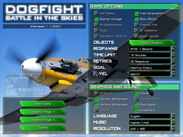 Dogfight: Battle In The Skies is a single-or multi-player action game for currently up to 2 players on one computer.