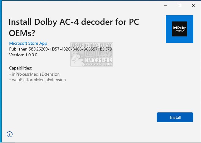 Dolby AC-3/AC-4 Installer includes the necessary installers for Dolby AC-3 and AC-4 audio technologies. These technologies are essential for integrating Dolby AC-3 and AC-4 into your multimedia applications and ensuring high-quality audio playback on your system.