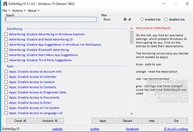 pXc-Coding has sent in DoNotSpy10, one of the first anti-spy tools for Windows 10.