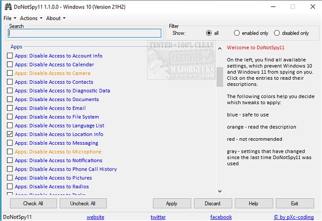 DoNotSpy11 is an updated anti-spy tool for Windows 10 and 11 by the author of DoNotSpy10.
