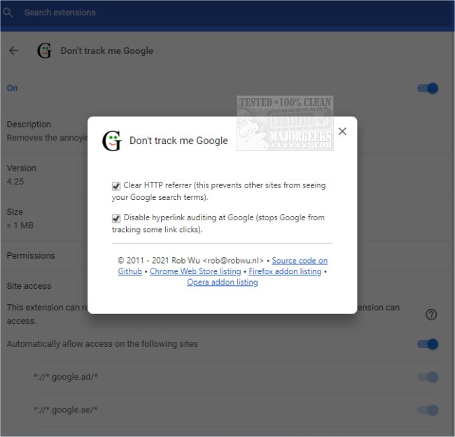 Don't Track Me Google for Chrome, Firefox, and Opera 4.29