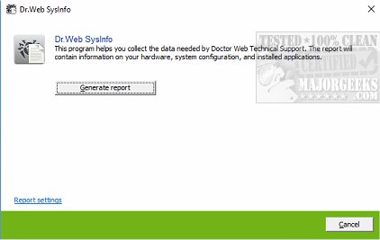 All you need to do is click "Generate Report" and wait. On a clean installation of Windows, it only takes minutes. Computers with issues could take much longer. Dr.Web SysInfo will then generate a report and provide a link to the folder with the reports. Rerunning it will create a new folder so you can run it as many times as needed.