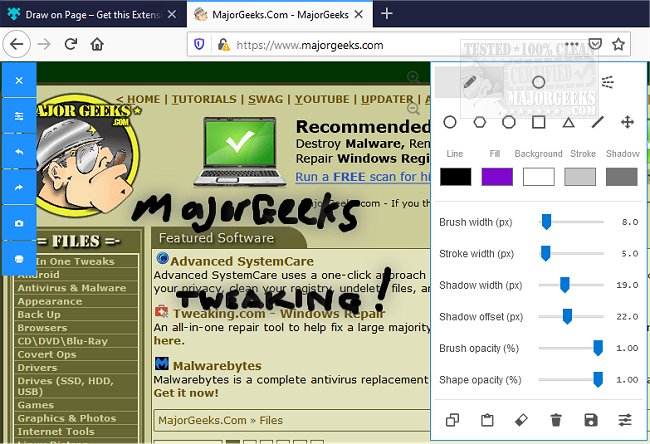 Draw on Page for Chrome, Firefox, and Edge allows you to draw on any website using the included simple drawing tools; you can then print the results.