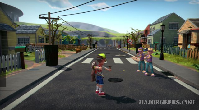 Shoot the bullies with your slingshot or use the street elements at the village to set traps, craft different projectiles from firecrackers to stink bombs, drive R/C cars, destroy things, and more.
