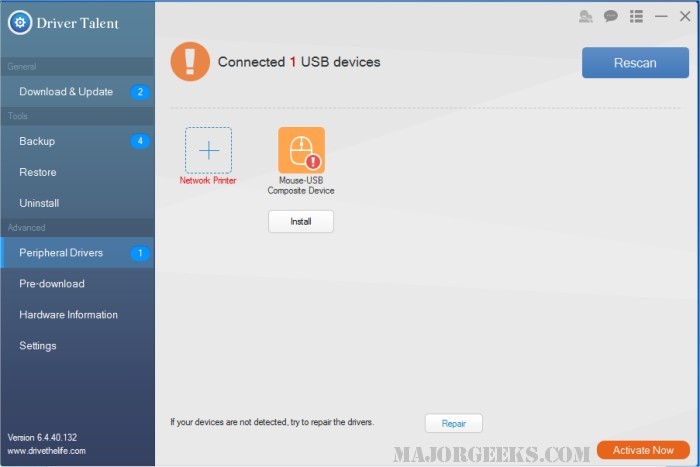 Driver Talent helps you keep track of your drivers and lets you update, repair, and back them up as needed. It features a clean, easy-to-use interface organized into straightforward tabs like Overview, Update, and Tools. Scanning or rescanning is just a click away from the main screen.