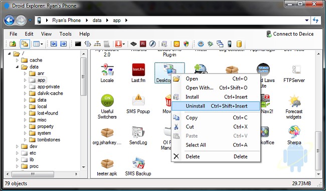 Droid Explorer is a tool to manage your rooted Android device with the simplicity of Windows Explorer.