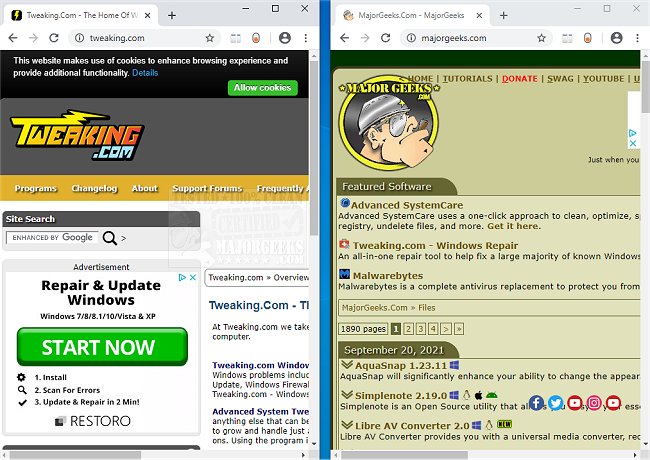 Dualless effectively splits your browser windows into two via a few clicks. You can adjust the ratio depending on your needs. Like a right/left? You can set it so your browser window shows on the right will occupy 30% of your screen. Then the rest of the space can be left leave to other activities like watching how-to videos from MajorGeeks, for instance.