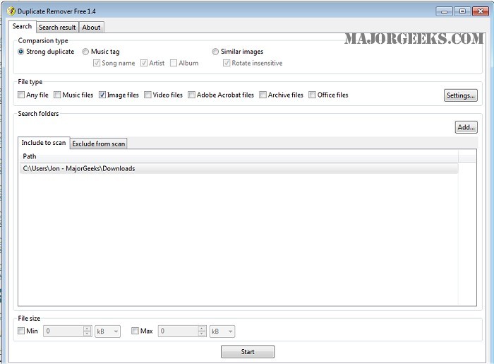 Duplicate Remover Free enables you to specify the folder or disk where you want to search for duplicates and click on the "Start" button. Then proceed to the search result tab, where the results of any duplicate files will be displayed. Just tick the ones you do not need, and remove them. Simple as that.