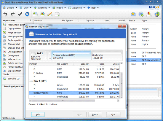 Any operations with hard drives are critical, and performance reliability is one of the most important requirements when choosing partition software. EASEUS Partition Master is reliable and integrated with the Disk & Partition Copy Wizard and Partition Recovery Wizard to ensure 100% data security.