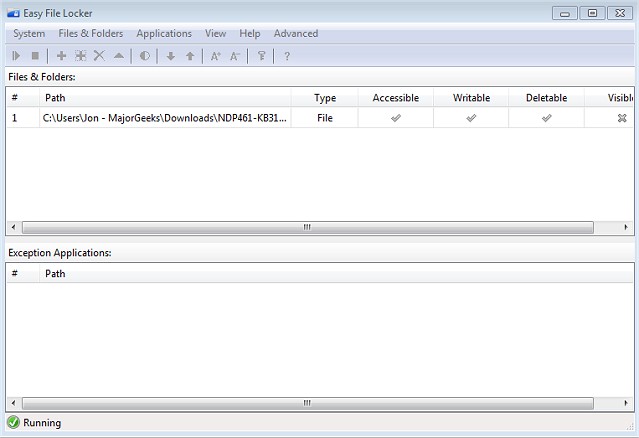 The locked files/folders are protected from accessing, users can not open, read, modify, move, delete, copy, rename the protected files/folders. Files and sub-folders in a locked folder are also protected.