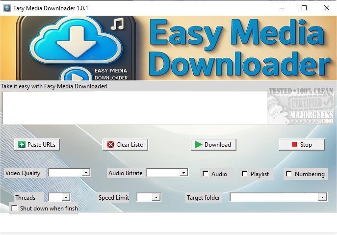 The user experience with Easy Media Downloader is straightforward and intuitive. It features a designated input field where users can paste video links for downloading. Unlike some other tools in the market, Easy Media Downloader does not support importing lists of URLs from a file. However, users can still paste multiple URLs, each on a separate line, and the application will process all of them efficiently. You can also set the number of threads, limit the download speed, and choose the target folder. If you download a larger file, you can also configure Easy Media Downloader to shut down after the download is finished.