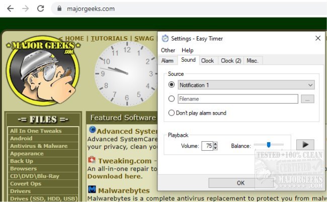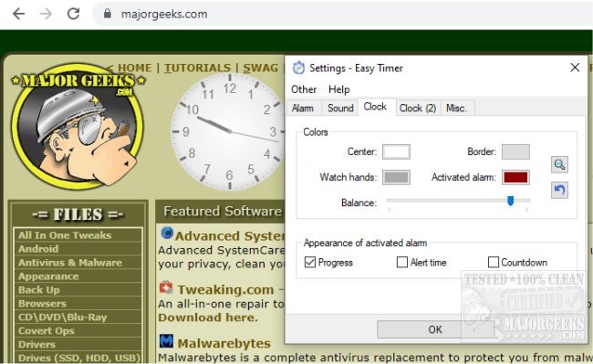Easy Timer also includes a separate analog desktop clock and the systray balloon tips that display useful information like current time, alarm time, and progress.