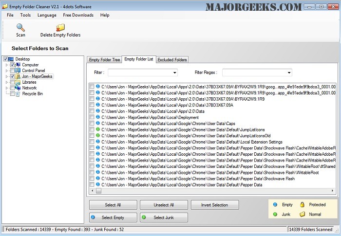 Empty Folder Cleaner is designed for quickly scanning specific folders; it will identify all empty, junk, protected, and normal folders. You then have the option to delete any empty folder easily.