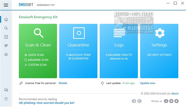 Emsisoft Emergency Kit is developed for malware removal professionals and corporate users, such as help desks and PC repair companies.