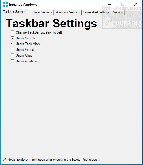 Enhance Windows is simple to use once run and gives a nice assortment of enhancements to apply.