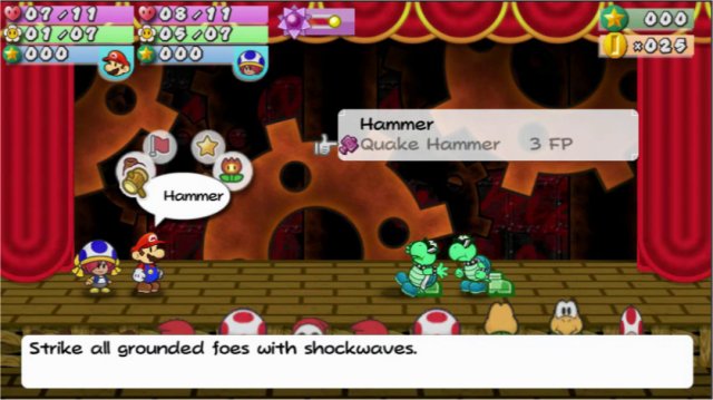 Level Up! -Mario and his partners will level up as they gain Star Points from battle. For the first time in Paper Mario, partners will have their own level and Star Points. All partners will gain Star Points from battle, but the partner being used at the end of the battle will get slightly more.