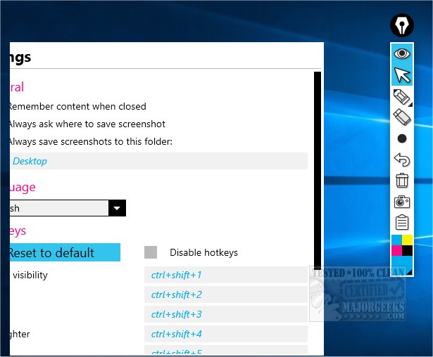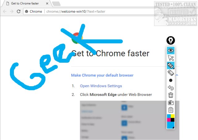 Epic Pen is a small toolbar that sits on top of other windows, and you can easily select cursor, pen, eraser, pen size, undo, and clear screen. A screenshot function is available. It's simple to use and learn. The third screenshot below shows us writing over Google Chrome within minutes of starting.
