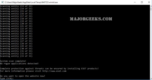 I was given a clean bill of health, naturally as we're in a fresh VMware, but on the second run it asked to delete a file, and a reboot was required. Odd. If a lesser known company wrote this, it wouldn't have a chance on MajorGeeks but being ESET we're giving them the benefit of the doubt here. It's a tool you might just want in your toolbox the next time you need just the right tool the job.