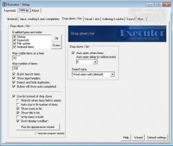 ● Besides keywords, Executor can also optionally and dynamically add matching start-menu items, control panel items, and other handy items to the drop-down/list.