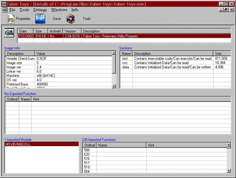 Faber Toys is a system utility, mainly developed for power users who want to know what's going on in their Personal Computer. It may also be used by programmers as a tool for tracking their applications.