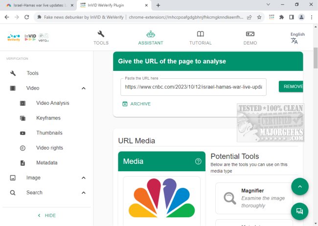 Fake News Debunker for Chrome also includes an Assistant feature to help you to find which tool can be used to support your specific verification work.