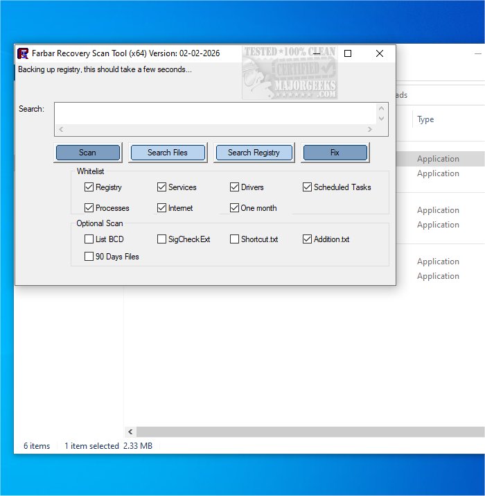 Screenshot for Farbar Recovery Scan Tool 64-Bit