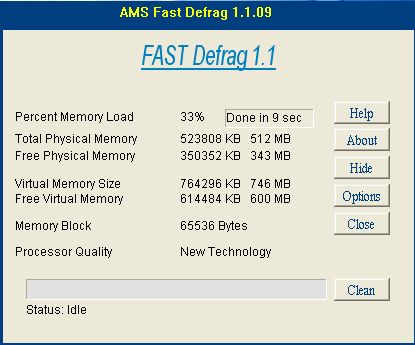 Fast Defrag 2 Standard (Std) is a tool that can free and optimize RAM (Random Access Memory) and the swap-file usage. It features with a powerful engine and uses low system resources.