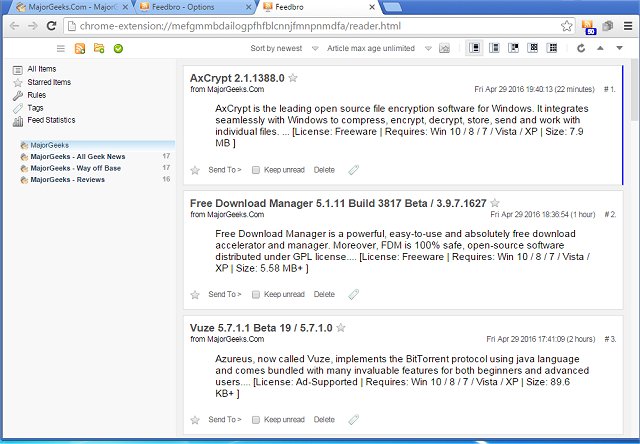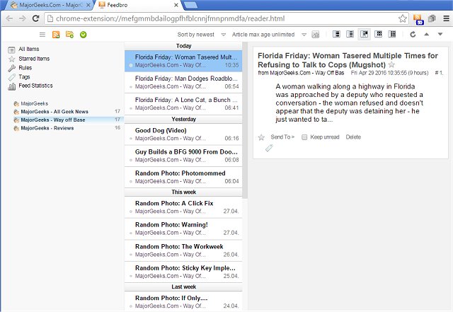 Feedbro for Chrome and Firefox is a free easy-to-configure feed reader. Use it for easily connecting to and reading blogs, news, Twitter, Instagram or any RSS, Atom or RDF based feed.