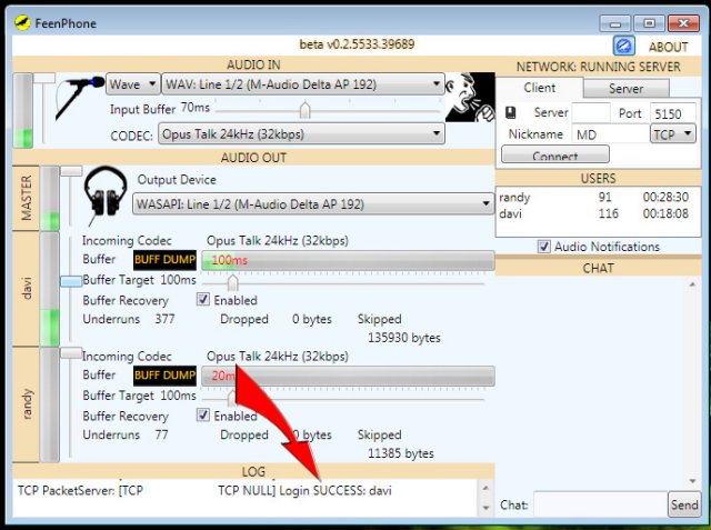Additional audio format / codec: PCM, G.722. (were later removed from interface, didn’t sound as good as Opus) check3